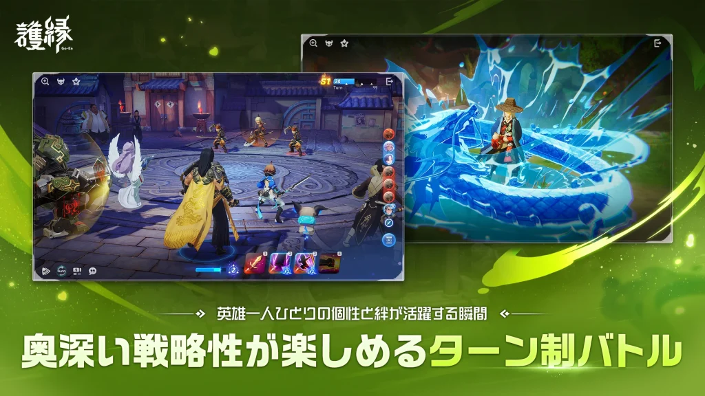 従来のRPGだと、アクションRPGとターン制RPGに分かれますが、「護縁」は両方のバトルシステムを兼ね備えています。