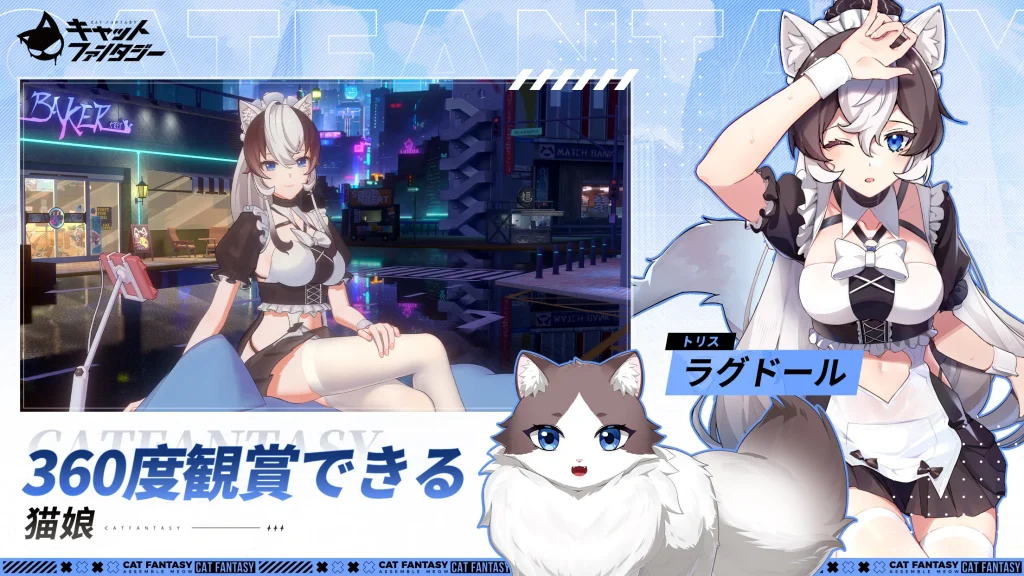 「キャットファンタジー」は、猫耳を持つ個性豊かなキャラクターとともに冒険するファンタジーRPGです。2024年9月にリリースされ、スマートフォン(iOS/Android)およびPCでプレイ可能です。