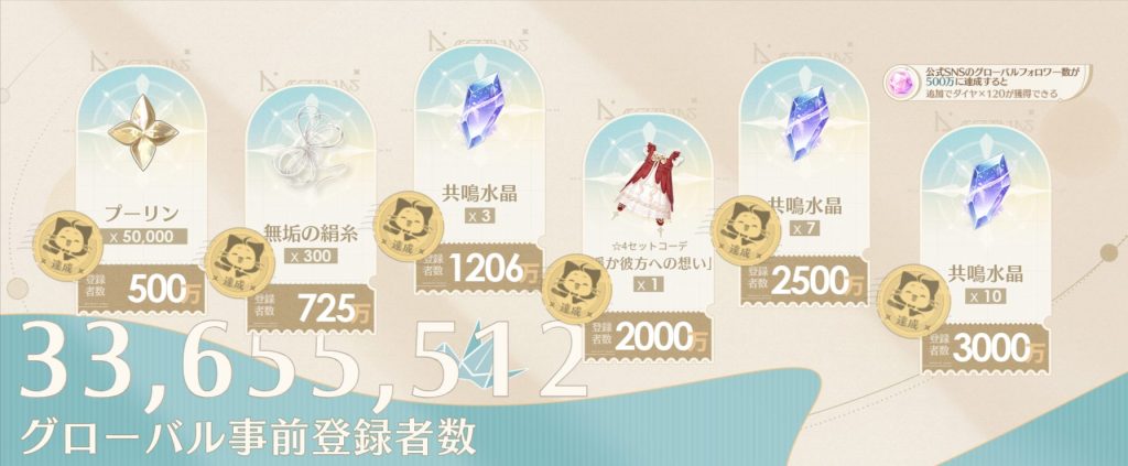 目標の3000万人達成で上記のアイテムが入手可能な状態で始められます。