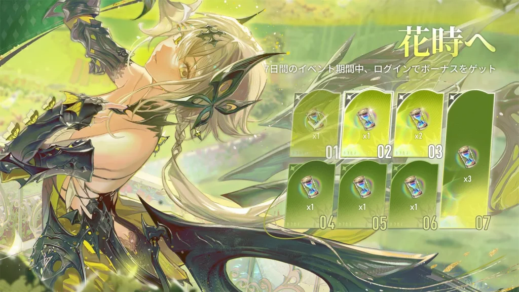 イベント期間中限定、7日間のログインでボーナスをゲットできます。