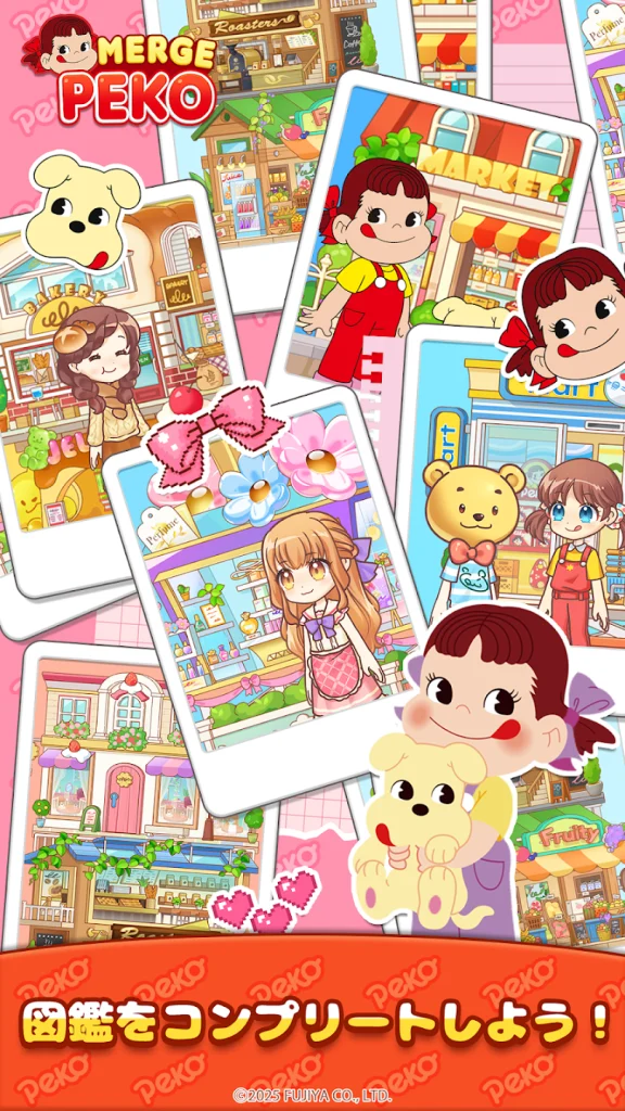 - ゲーム性: 不二家のお菓子をマージする、中毒性抜群のパズル。