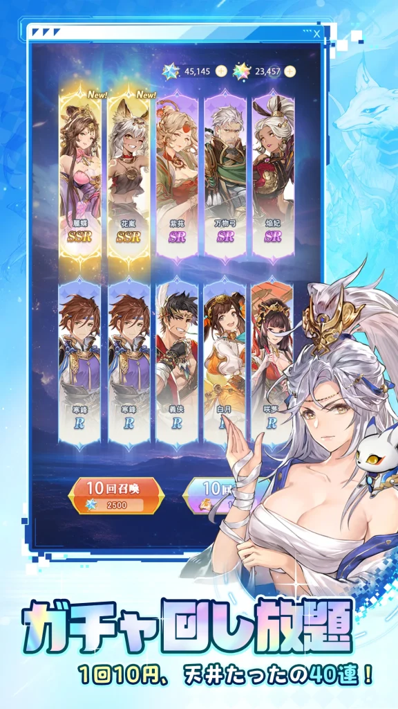 どうしても欲しいキャラクターがいる場合でも、天井が40連と非常に低く設定されているため、微課金でも確実に最高レアリティのキャラクターを狙いに行くことができます。1回数十円という価格破壊レベルのガチャは、引くこと自体が最高のエンターテインメントになります。